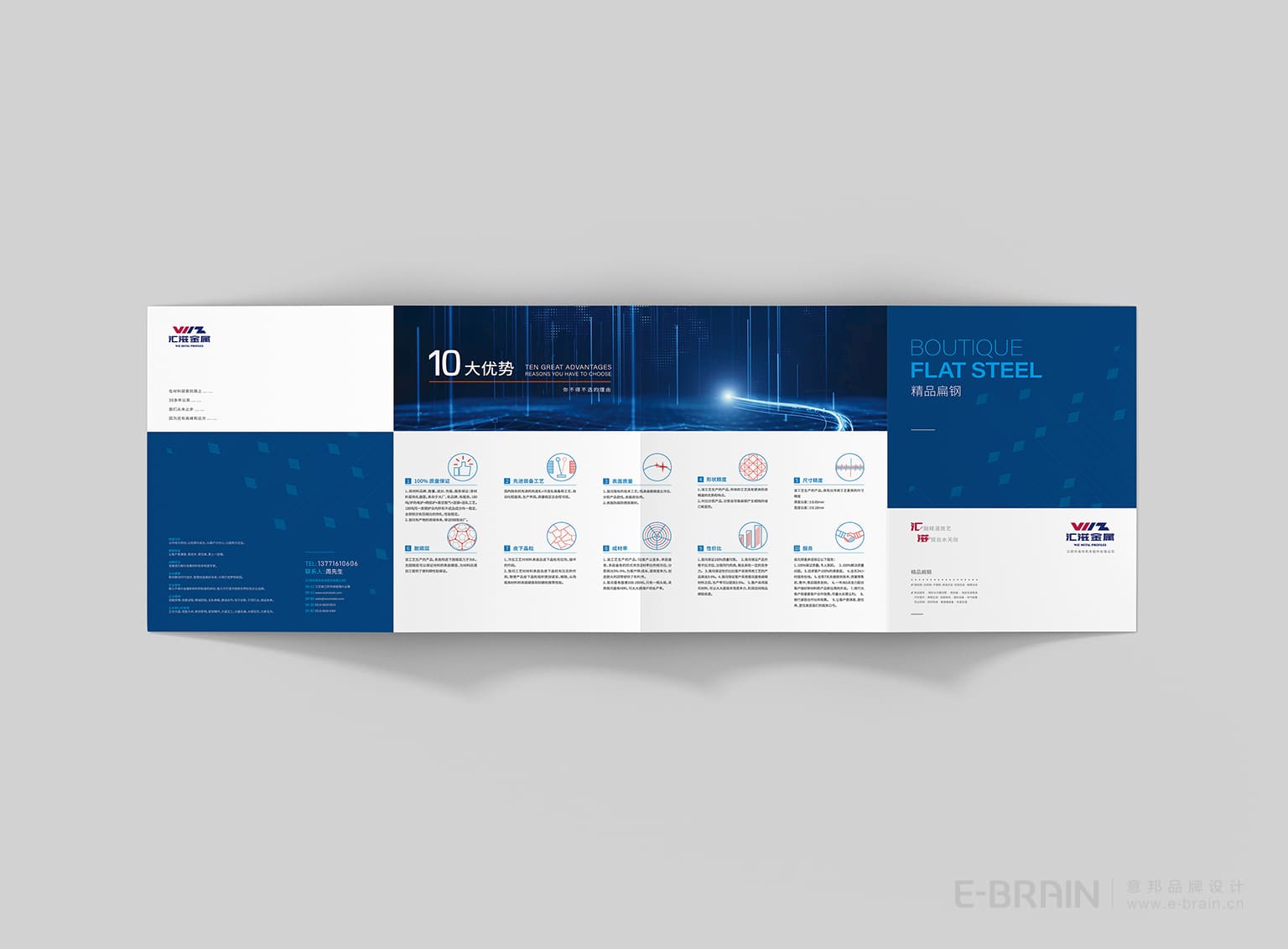 江阴汇滋金属型材主要经营碳结钢、合金钢、精品扁钢的销售。此次为精品扁钢系列产品做产品折页设计、产品宣传册设计,为其量身设计了凸显其产品优势的折页,帮助汇滋金属提升品牌形象。