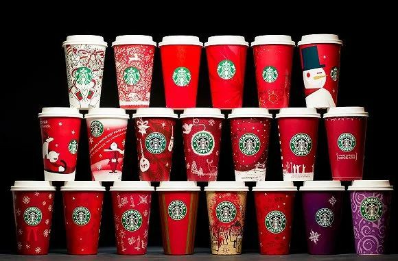 星巴克的圣诞纸杯从1999年开始就变为红杯。杯身图案有比如积雪的房子、圣诞树、挂饰等。而到了2015年,星巴克则将圣诞图案删去,仅留下红色纸杯,大部分的空白激起了消费者创作的想法,当时在社交圈上引起了创作狂潮,所以在2016年推出的13款圣诞杯,就是由之前征集而得的消费者自行创作的样式。