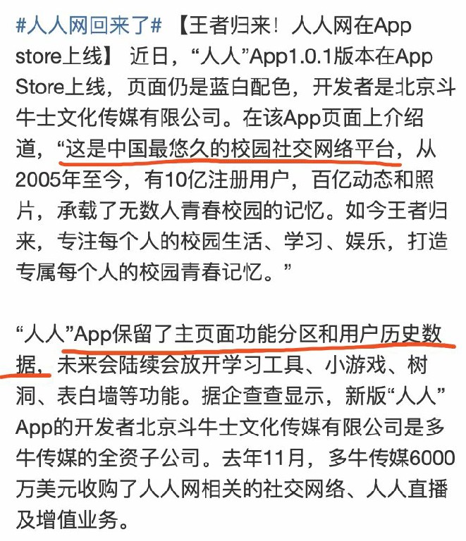 随着Facebook等社交APP的兴起,ChinaRen的创始人陈一舟瞄准了国内市场的空白,于2006年收购校内网,2009年改名为人人网。一度成为与腾讯QQ、新浪微博并肩的社交软件。