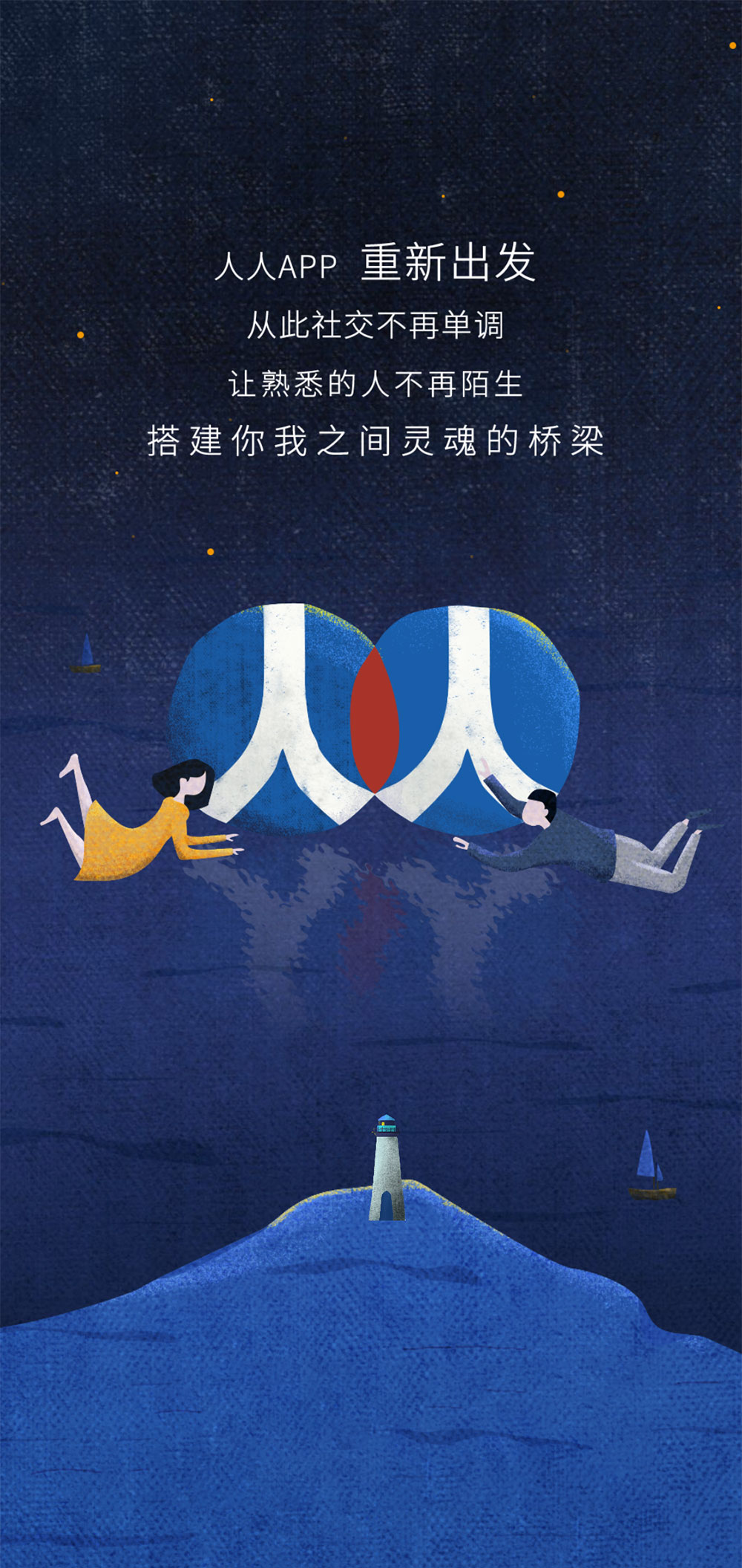 2009年8月4日,校内网官方宣布其正式改名为「人人网」,域名也由之前的xiaonei.com变为renren.com。更名人人网后,新的品牌LOGO虽然延续了之前蓝色风格,但在图形上有了很大的变化。从校内到人人,也就意味着从小圈子到大圈子成为面向所有用户的社交平台。LOGO的设计充分的体现了这一特点。