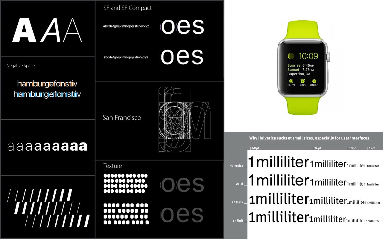 苹果的San Francisco-是随着Apple Watch推出的,专为小屏幕而设计的一款字体。一直以来Helvetica是作为iPhone、iPad和Mac操作系统的专属字体。但在Apple Watch的问世,Helvetica达到了字体使用极限。而San Francisco的简洁、现代、良好的可读性更适用苹果的多种产品。