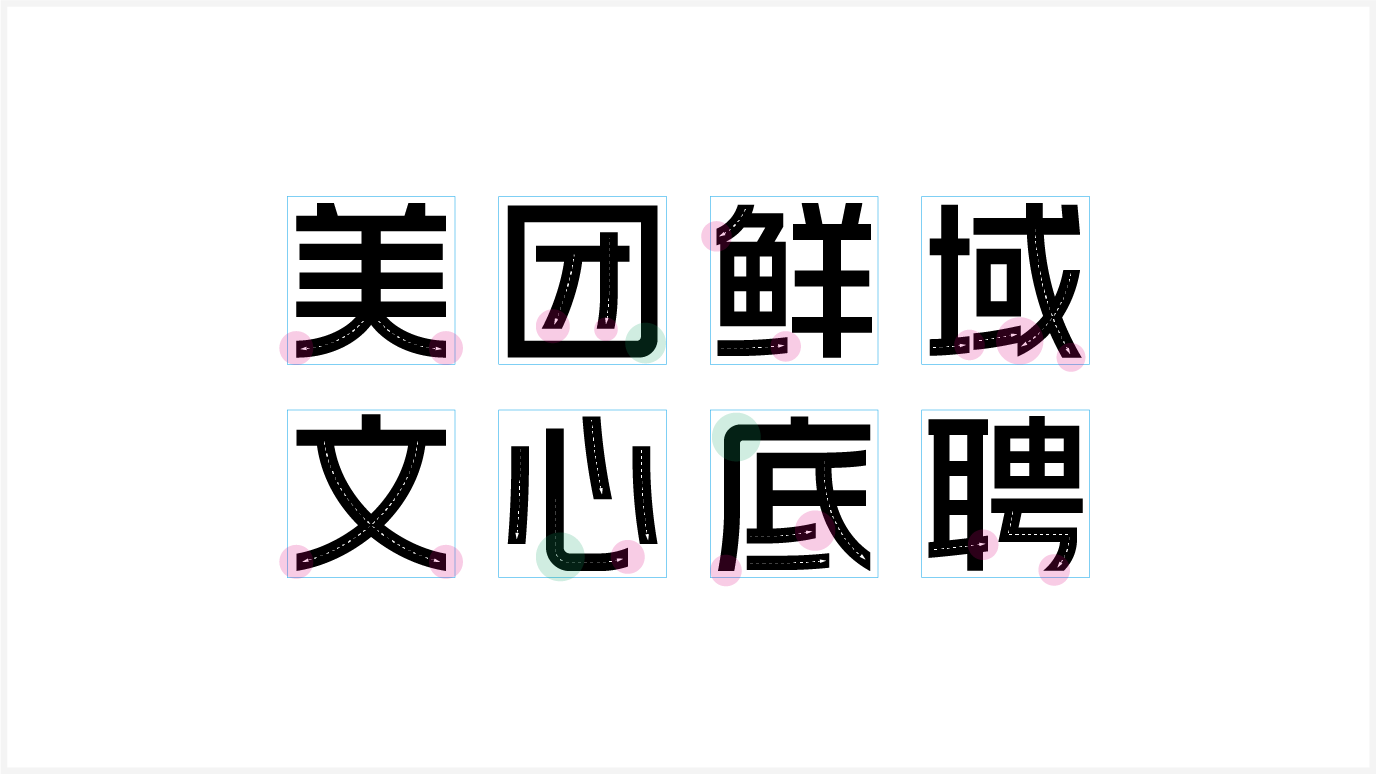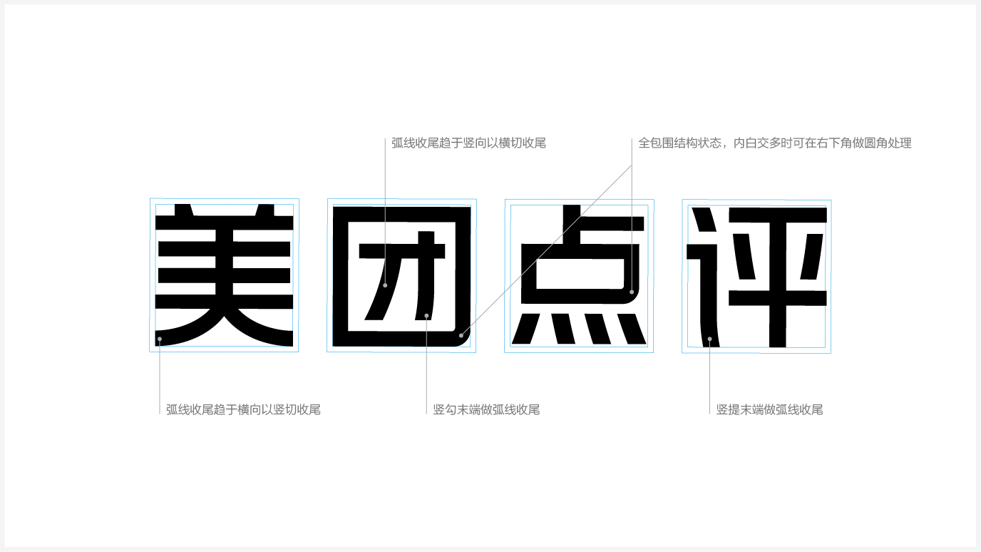 一款字体的设计,成果看似简单,而过程却极其考验设计师的设计功底,浓缩了设计师对文字美感的领悟,在反复琢磨和一笔一划细微的调整中让作品越来越鲜活富有灵气。以上就是关于美团品牌字体设计过程中的个人思考和阶段性总结。