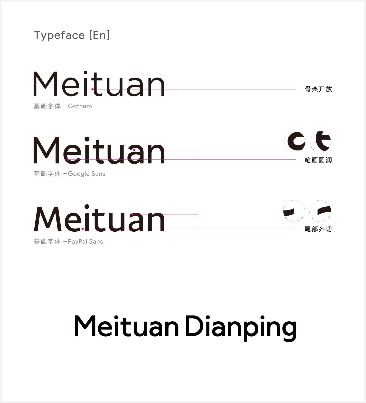 六月中旬美团推出了新的品牌形象,此次升级是深化用户印象并传递一致的视觉感知。这里只想讲讲品牌升级当中我负责的品牌字体设计部分。