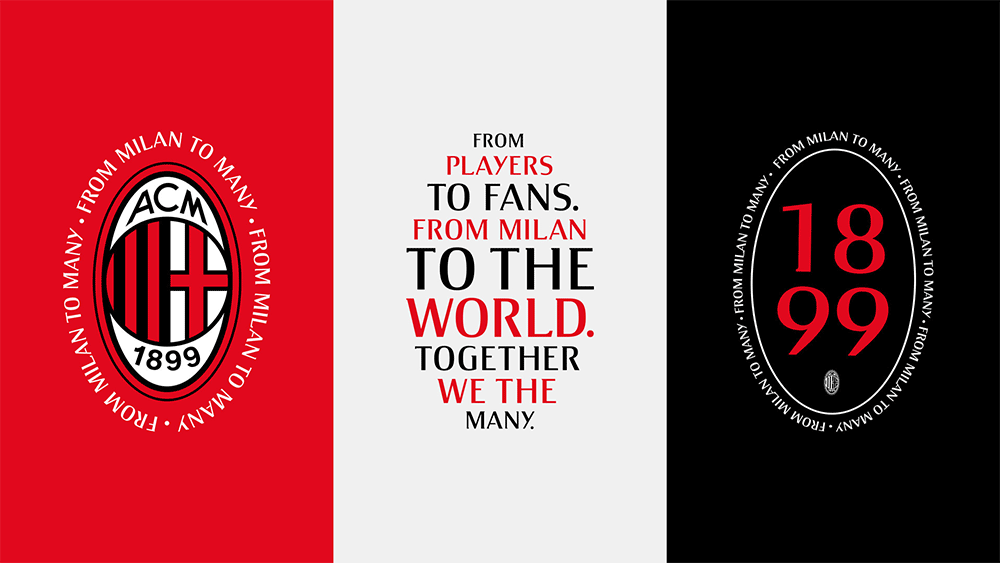 新形象把俱乐部的标志性徽章作为团结的象征——连接着数百万人的跳动的心。一个世纪以来,足球之神和球迷们一直在亲吻AC米兰这枚著名的徽章。为向这一传统致敬,DixonBaxi工作室保留了这一设计,并使用标志性的椭圆形外轮廓来讲述动人的故事。