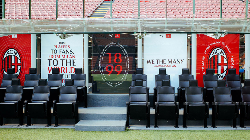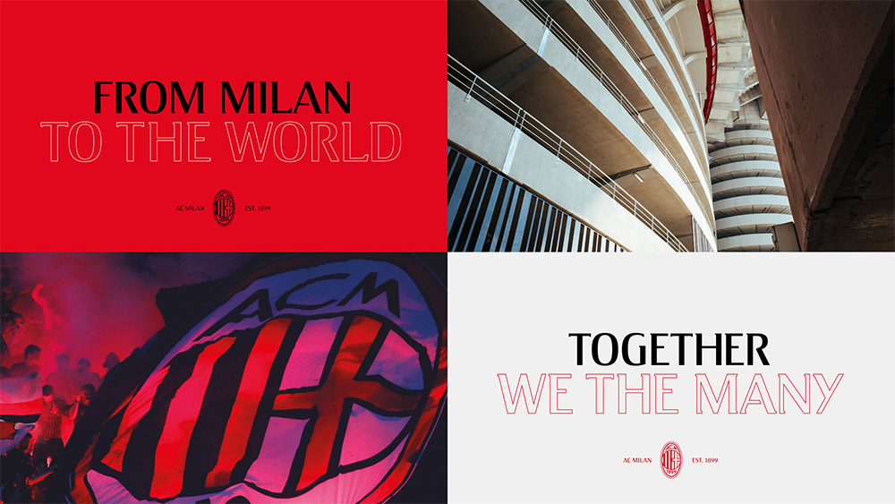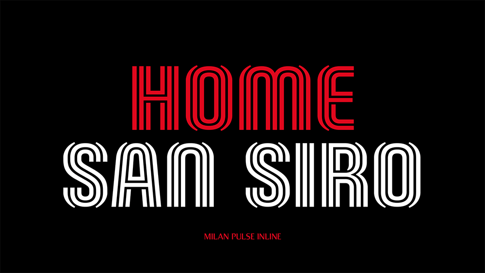 引入动态的新字体,灵感来自与粉丝的共同心跳。从时尚、生活方式、品牌和意大利文化中汲取灵感,设计师创造了一个大胆而优雅的印刷系统。它立即被识别,它捕捉了米兰球迷对俱乐部的热情。