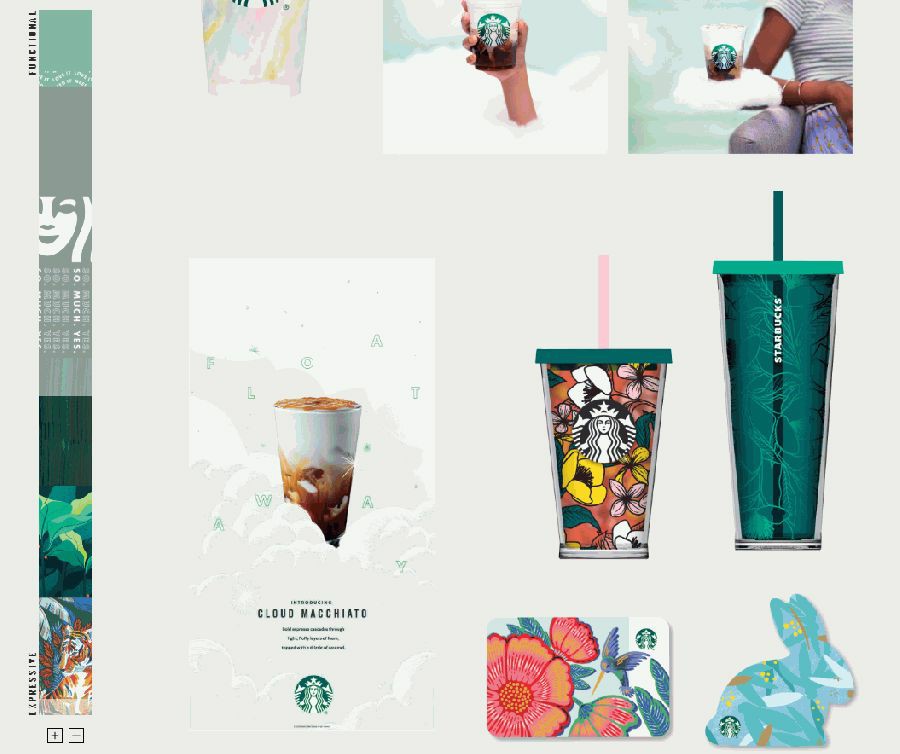 星巴克将「功能性/Functional」与「感染力/Expressive」作为视觉识别的评判指标,借此梳理、定调每一次的视觉应用。