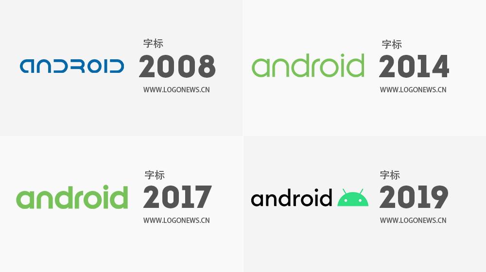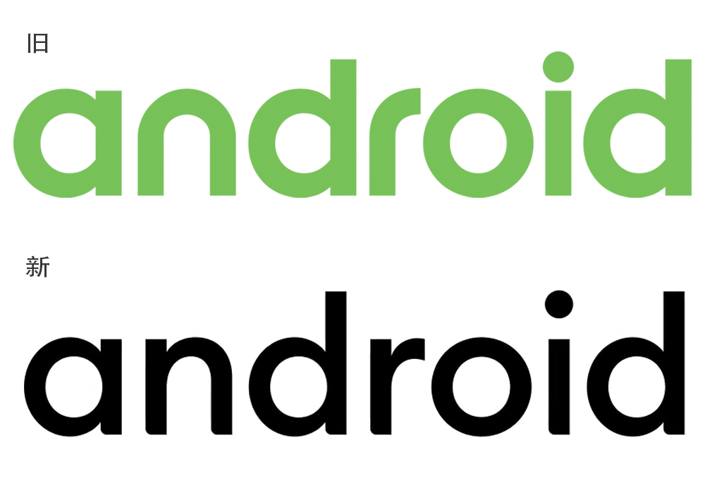 新的Android LOGO采用Android机器人和黑色的“android”文本。谷歌将文字颜色从绿色更改为黑色,因为视觉障碍者对绿色不敏感。
