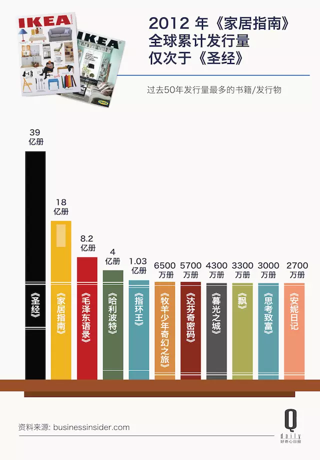 66年来,宜家的宣传册(《家居指南》)每年的发行量都有增无减,已经累计发行28.5亿,仅次于《圣经》,位居全球第二。而更令人服气的是,宜家总能找到新奇而脑洞大开的方式推出每年的《家居指南》。