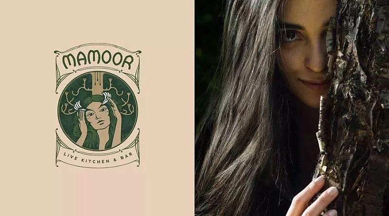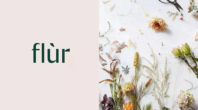 下面两张图,是两个不同的品牌,左面是标志,右侧是他的品牌配图。第一张图注重手工艺,用了带有剪刀和插花元素的图片;第二张图注重天然 ,图片主体是女孩子抱着苍老的树干。