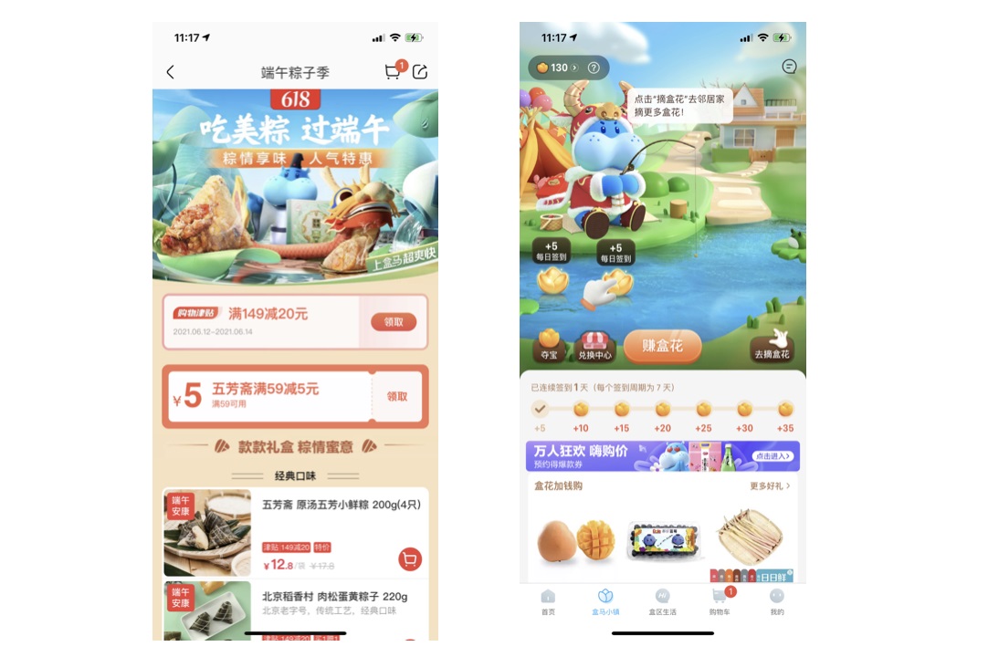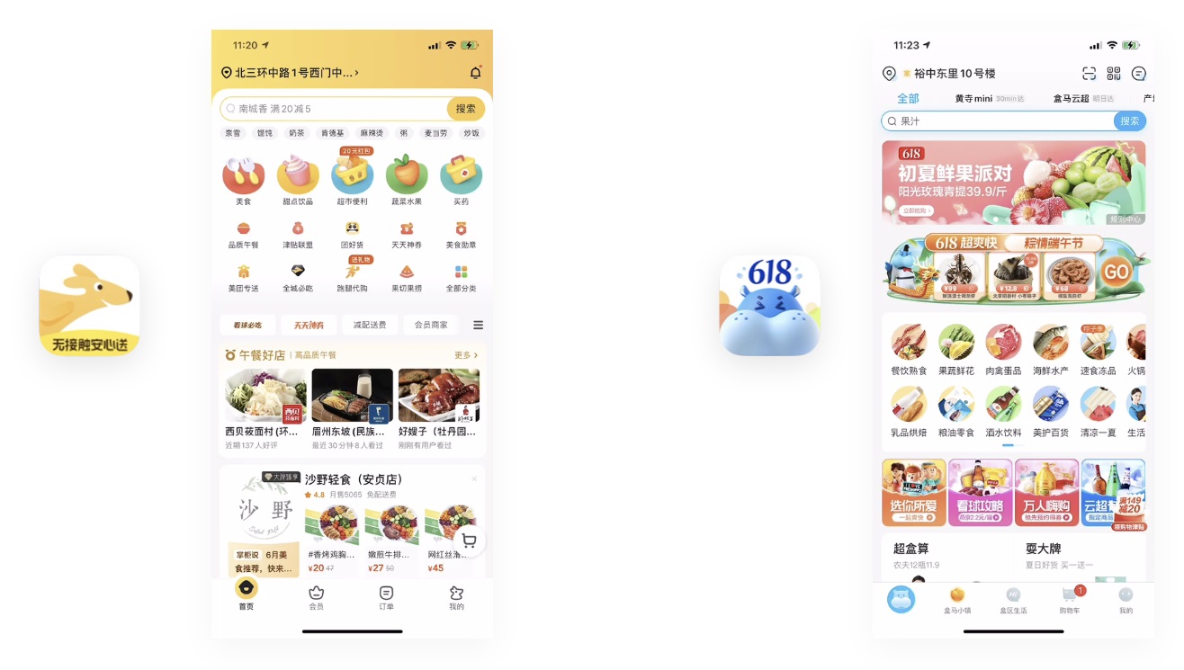 第三个场景:loading,包括下拉刷新和页面加载。首先我们先看一下美团,直接应用了美团的 IP-袋鼠的形象,飞速奔跑的 motion,既能体现外卖特性又富趣味性。盒马生鲜,他没有直接应用盒马的形象,而是提炼了 logo 里的有特征性的图形做 loading。这两种方法在 app 里用的都比较广,也是设计师常用的方法。
