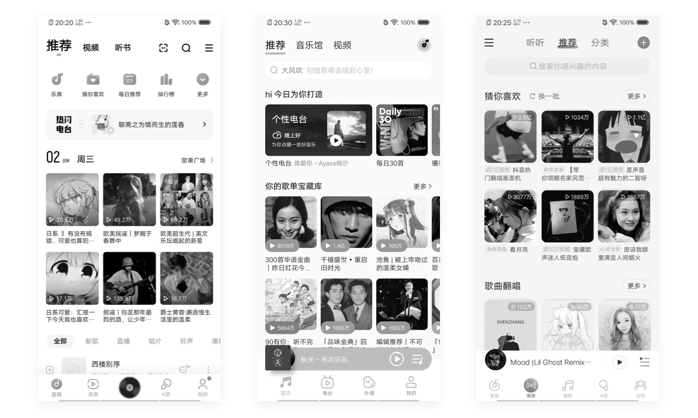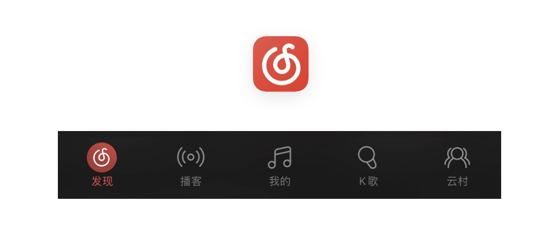 再比如网易云音乐,图标设计提取了 logo 图形细线条的风格,这是网易音乐独有的品牌基因。