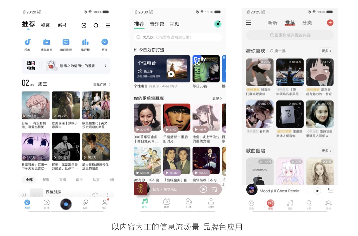 除了图形设计,颜色的应用也是塑造品牌基因的方法。尤其在以内容为主的信息流展示场景,想要在这种场景融入品牌基因,最重要的就是品牌色应用。比如品牌色用在下划线、或者某个标签、某个图标等,都是很关键的传达品牌的场景。