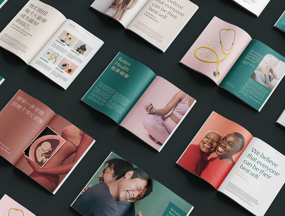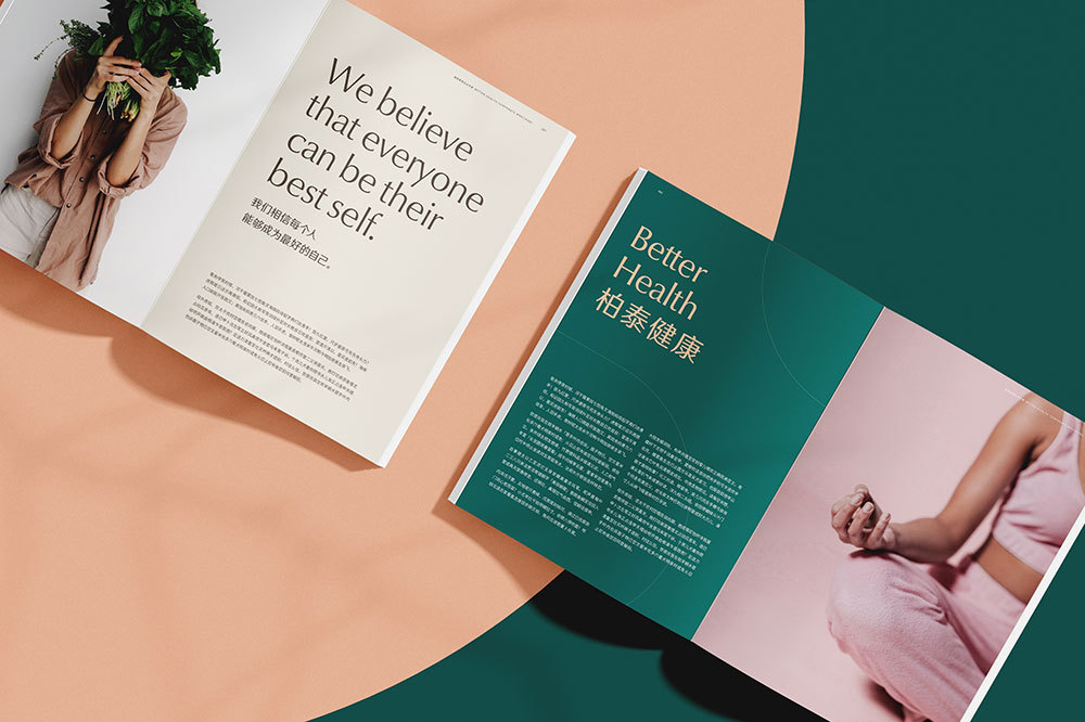 无锡设计公司,画册设计,包装设计柏泰健康有着美好的品牌愿景,即“相信每个人都能成为最好的自己”。因此柏泰健康力求将国际化的简单人性融入本地化体验,以打造一个繁荣为心,以客为本,关怀备至,化繁为简,科技赋能的品牌。品牌视觉识别系统作为品牌形象的最直观表现形式,更是意在打破市场对于保险的固有印象,塑造一个高质感的人文形象。