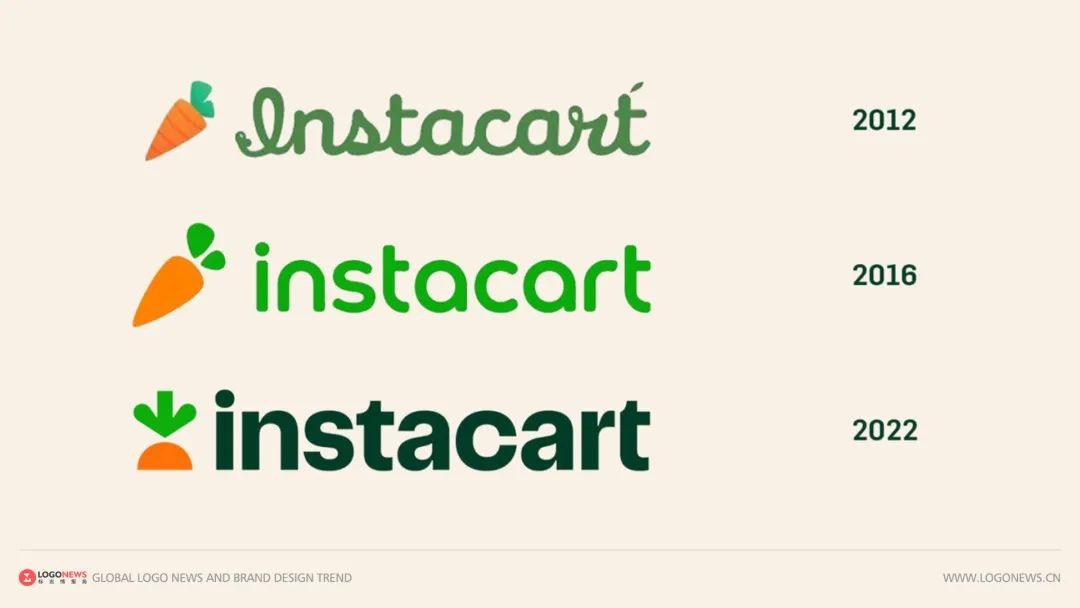 上个月我们曾报道过另外一家生鲜平台更改了图标和整体的视觉系统。同样用萝卜作品牌符号,同样是生鲜杂货电商平台,让我觉得赞的地方在于对图标概念的表达。在不破坏萝卜辨识度的前提下,Instacart 在绿色的萝卜叶子上做起了文章。
