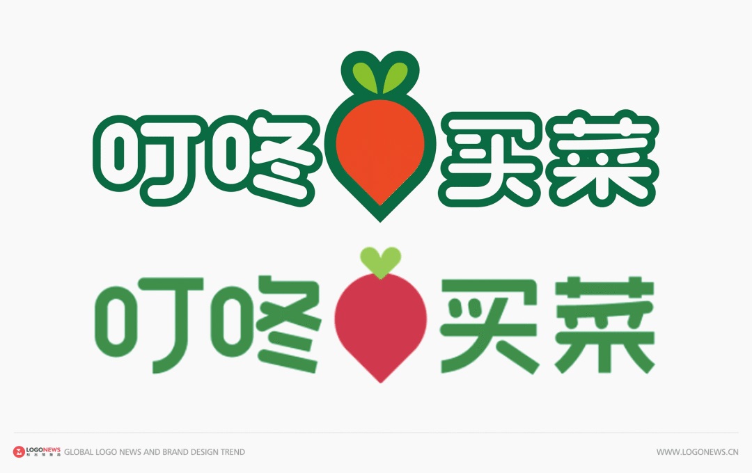 11月27日,叮咚买菜App 10版本发布,优化界面布局改善用户体验的同时还用上了全新设计的品牌LOGO。更新后的LOGO同样由文字和红皮萝卜图标组成,不同的是,新的字体和图标统一去除了绿色的描边。