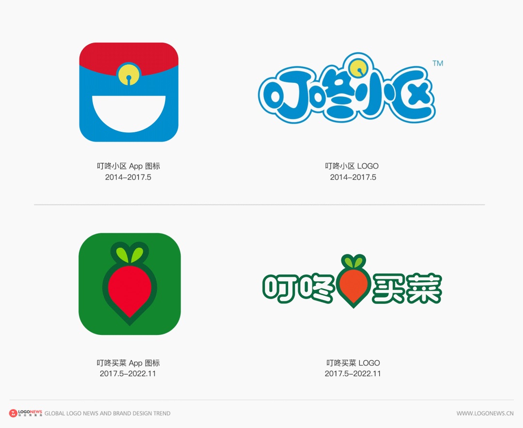 当年「叮咚小区」的LOGO也很有意思,不说你应该也能看出来设计灵感来自哪里。「叮咚买菜」上线后,推出了全新的「红萝卜」品牌LOGO并一直用到了今天。