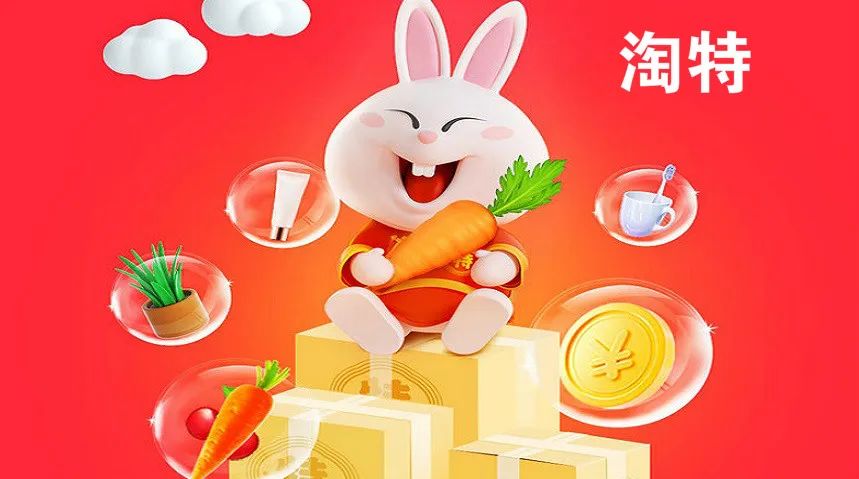 在配色上,由原本的淘宝标志性橘红+明黄,变成了粉色调。配上“萝卜特”兔子形象,更加可爱,有亲和力。